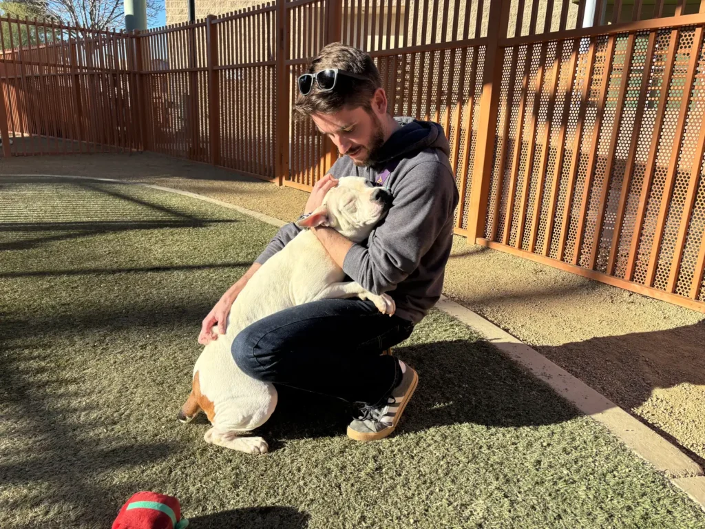 Zar különleges szokása hamar a menhely mindennapjainak részévé vált. Bár sok kutya mutat szeretetet a maga módján, Zar ragaszkodása egészen egyedi. Ő nem csak odabújik – teljesen beleolvad az emberbe.