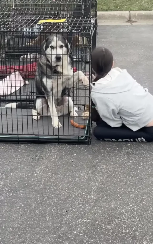 Bruno csendben ült a ketrecben, szinte lemondva a figyelemről. De amikor a lány leguggolt hozzá, mintha újraéledt volna benne valami. Finoman megemelte a mancsát, adott egy puszit, és ott volt benne az a fajta nyugodt, öreg lélek, ami rögtön a szívedbe mászik. A lány percekig ott maradt mellette, az arcát a rácsnak döntve, Bruno pedig hagyta, hogy vele legyen – mintha már régóta ismernék egymást.